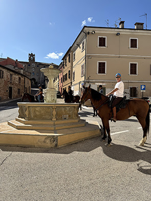 Montalfoglio appare all’improvviso dopo aver percorso sentieri sterrati e boschi rigogliosi. Questo borgo medievale, custodito dalle sue mura possenti, invita a una sosta che nutre il corpo e lo spirito. Qui l’esperienza si trasforma in un momento conviviale unico: l’Aperinlocanda. Immaginate di scendere di sella e trovare una tavola imbandita su una rustica botte, dove i salumi tipici, i formaggi locali e il pane appena sfornato celebrano la generosità della terra marchigiana, sorseggiando un calice di vino che racconta la storia delle colline circostanti.