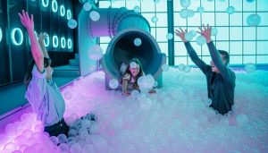 Non manca un omaggio a Roma, con una sala che ricrea una vasca termale romana riempita non d’acqua, ma da una marea di palline colorate, perfetta per un momento di gioco e relax. Infine, la stanza delle infinite lanterne invita a lasciar volare i propri desideri, un gesto simbolico e romantico che richiama tradizioni di diverse culture.