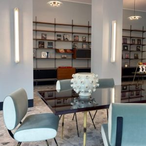 Protagonista di questa stagione è la selezione esclusiva di arredi anni ’50 e ’60, firmati da grandi maestri come Gio Ponti, Osvaldo Borsani, Ico Parisi e Carlo Mollino, solo per citarne alcuni. Pezzi unici che coniugano la raffinatezza del design d’epoca con funzionalità ancora attualissime: lampade in metallo e corda multicolore, poltrone con poggiapiedi disegnate da Allan Gould, le sedie Harp in frassino e corda intrecciata firmate Jørgen Høvelskov.