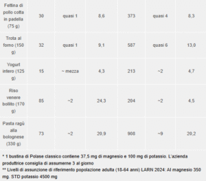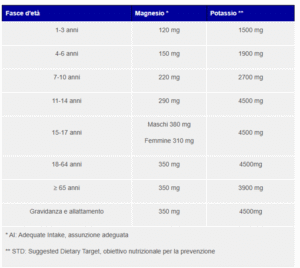 Quanto potassio e magnesio dobbiamo assumere ogni giorno?Tabella magnesio e potassio PH Press