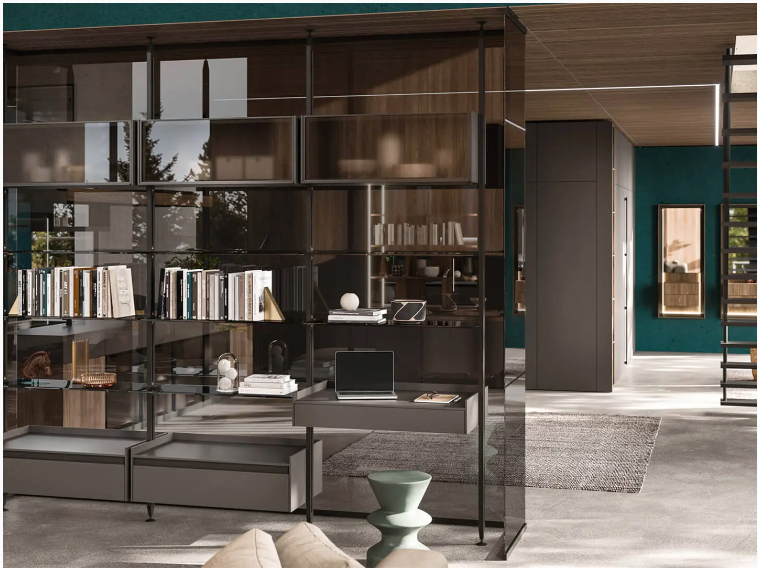 Una libreria come soluzione modulare elegante e versatile, pensata per ridefinire gli spazi interni con stile e funzionalità