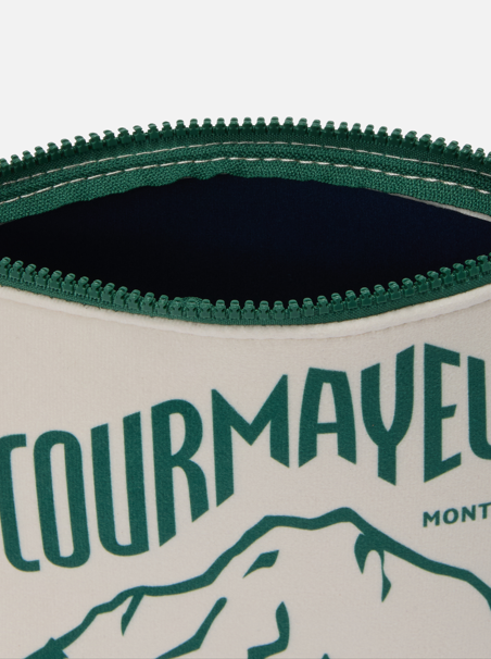Non mancano gli accessori, fondamentali per completare l’outfit: cappelli caldi e calze pensate per accompagnare sia la vita in quota che i momenti di relax davanti al camino. Le grafiche sono un omaggio diretto alla natura: richiamano l’identità di Courmayeur e i profili del Monte Bianco, reinterpretati con quella palette cromatica alpina che sa essere elegante senza sforzo.