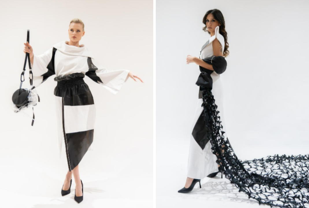 Il segreto sta nella costruzione: canaletti interni e sistemi di coulisse permettono ai tessuti di dialogare con il corpo, creando drappeggi che sembrano scolpiti dal movimento. È una moda intelligente, modulare, pensata per adattarsi a diverse fisicità in modo inclusivo. L’uso del taglio vivo e delle lavorazioni in sbieco regala poi quella pulizia nelle linee che rende ogni pezzo un piccolo capolavoro di sartoria moderna.