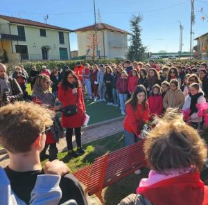 Inaugurazione Panchine Rosse Senza Veli Sulla Lingua con i giovani. PH IG