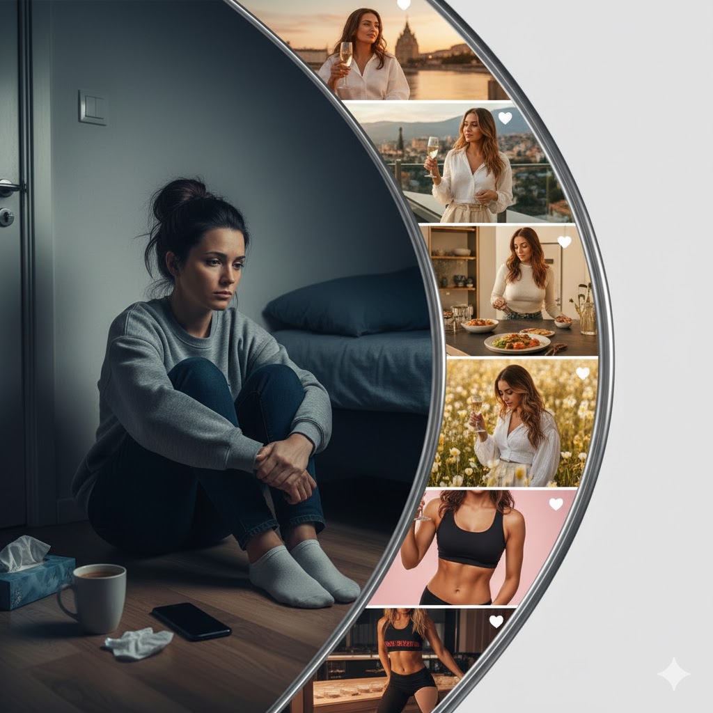 Scorri il feed di Instagram e cosa vedi? Lei in vacanza alle Maldive, lei con la nuova borsa di lusso, lei con il corpo perfetto in palestra. E tu? Tu sei sul divano in pigiama chiedendoti dove hai sbagliato nella vita. Tranquilla: non sei l’unica a sentirti così. E soprattutto, non è colpa tua. È colpa di quello che gli scienziati chiamano “lo specchio deformante dei social media”.