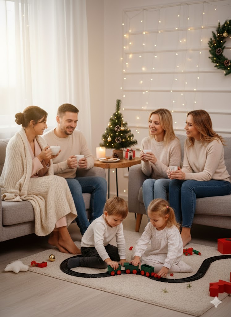 Questa confezione non è solo un regalo: è una porta magica che si apre su un mondo incantato. Il design racconta una fiaba natalizia: la neve che cade lieve, persone che pattinano felici, coniglietti bianchi che saltellano tra le tazze fumanti, e gli ingredienti che raccontano Twinings che danzano come stelle comete. Una ruota panoramica fatta di dolci gira lentamente al centro del villaggio, mentre un campanile innevato scandisce il tempo delle feste