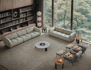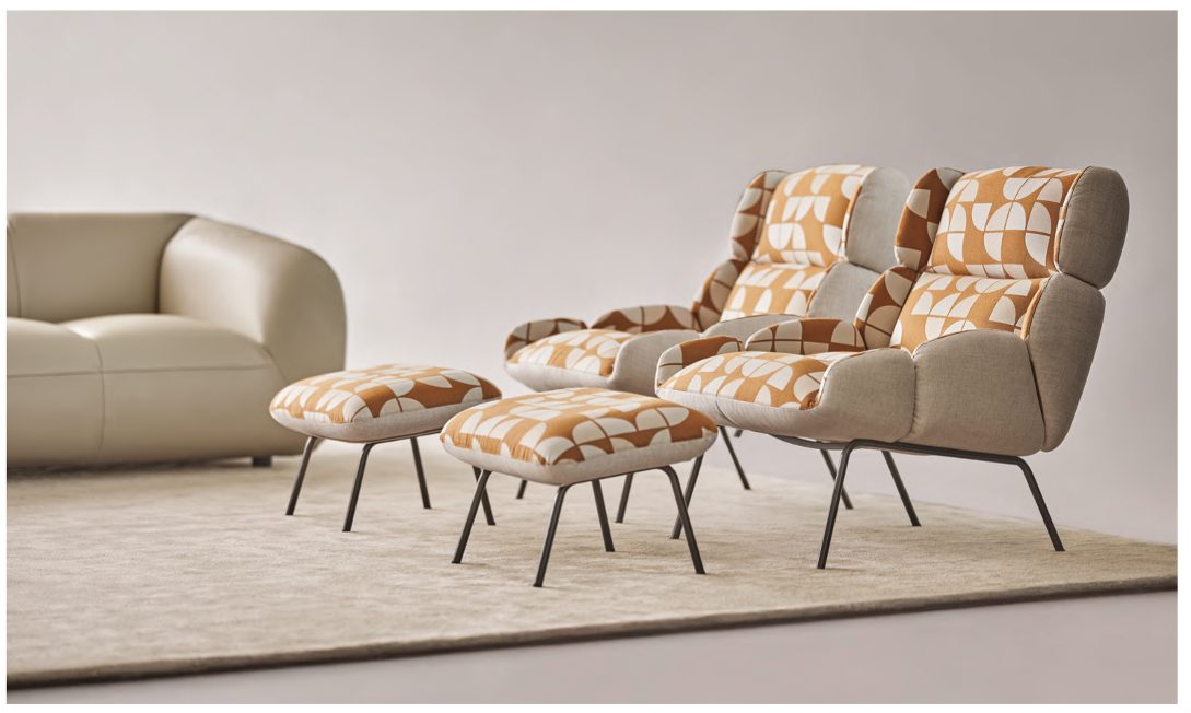 Disponibile anche con pouf coordinato, per completare l’esperienza di comfort con un gesto di eleganza funzionale.
